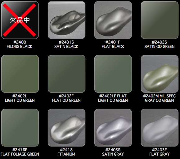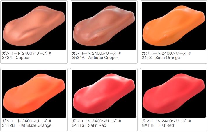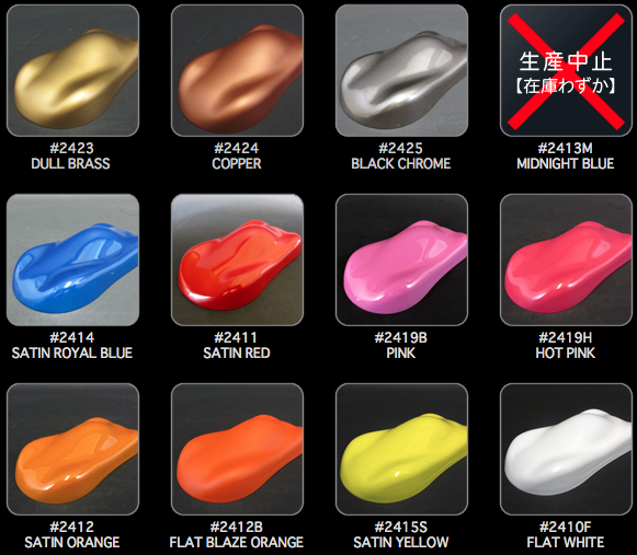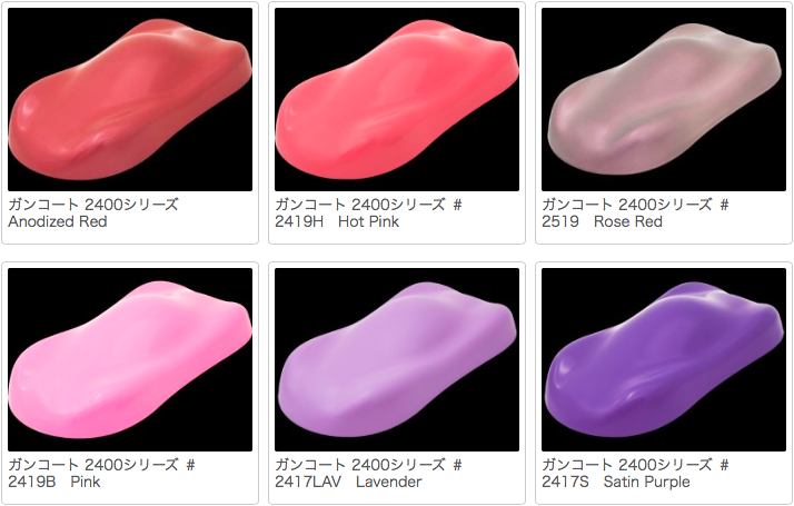 カラーバリエーションも豊富で、基本色の、赤、青、黄、黒、白を調色することで、オレンジやピンク、紫と、お好みのカラーで塗装が可能