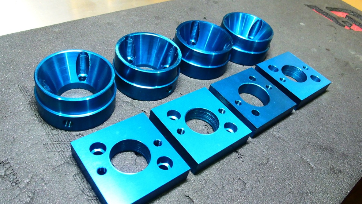 ・アルマイトは、各工程が槽単位となっています、電解槽・染色槽・封孔槽に漬け込み着色しますので、1個でも、4個でも必要工数が同等にかかります、よって、施工基本料金を頂いております、ご了承下さい。