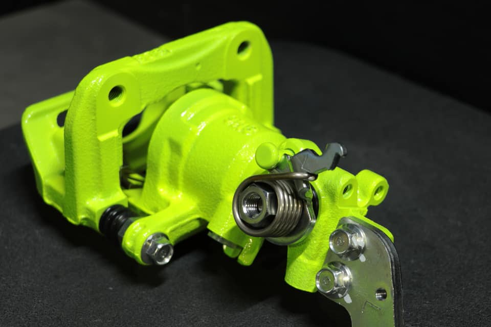 パーキングブレーキ一体型構造キャリパーも可能です、RX-7、シルビア、タイプRなどのリヤキャリパーがこれになりますが、問題なく分解組立から塗装が出来ます。
